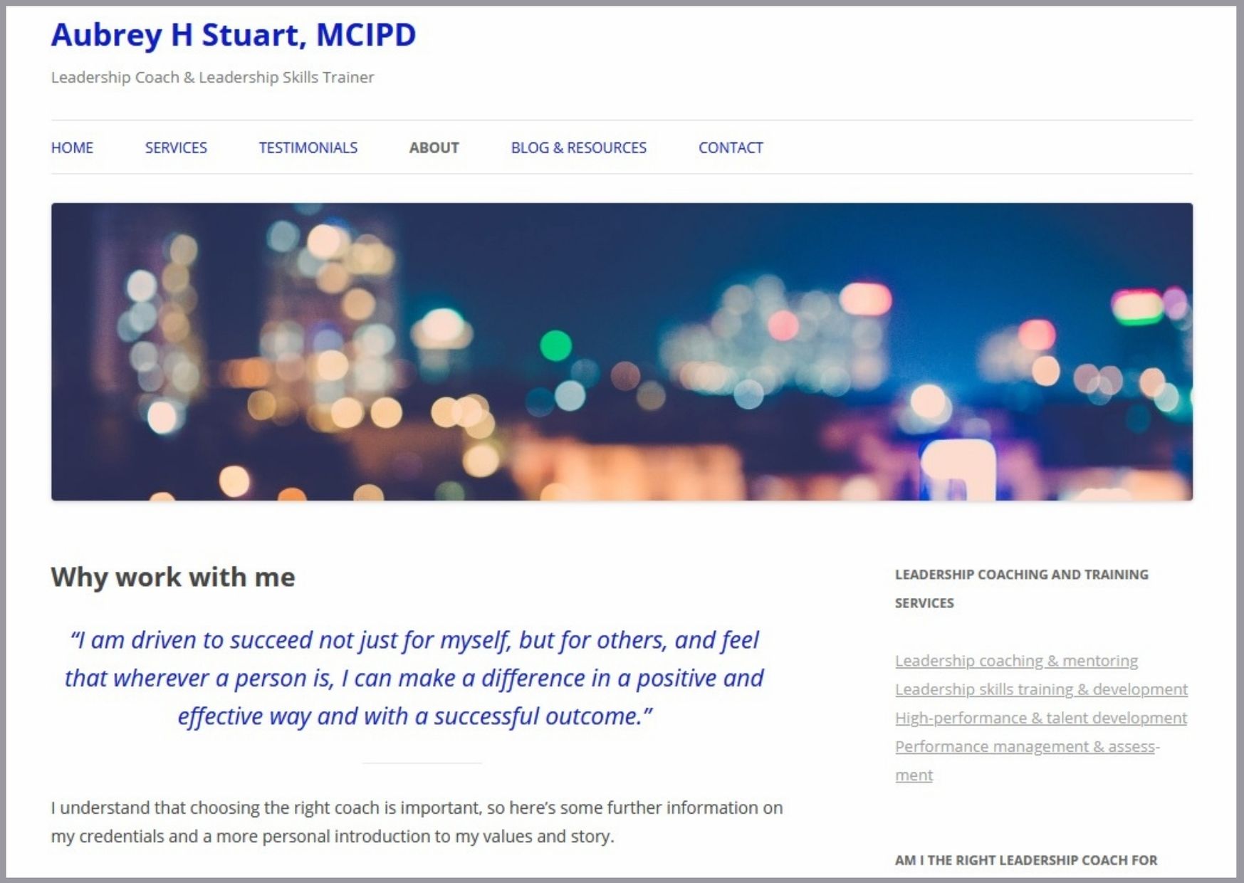 25 years in the industry, a large network of contacts and a constant flow of word-by-mouth recommendations have meant that Aubrey never got round to building an online presence for his services. However, with continued success and demand for his services, and to support consistent messaging and sustainable growth, it was time to put his offering on paper (or a website), and to clarify, simplify and write his brand story.
